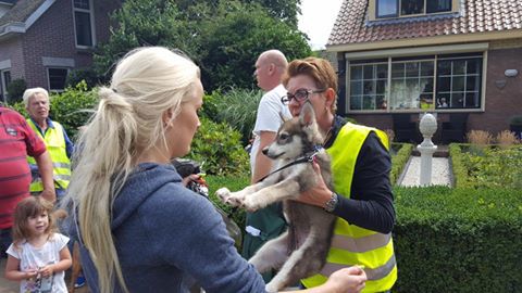Onze hulp werd ingeroepen door de eigenaresse en Dierenambulance Bollenstreek. Pup Binky werd al een paar uur vermist vanuit een tuin. Akka laten ruiken daar en ze bleef eigenlijk een beetje bij de tuin hangen. Op een gegeven moment gekeken of ze het spoor aan de overkant wilde oppakken. Daar kwam ze snel van terug gelopen, ze pakte niks op. Eenmaal terug dachten wij zelf ook, de pup kan niet ver zijn. Akka pakte op een gegeven moment het spoor op bij de buren en gaf aan dat daar iets moest zijn. En jawel hoor, daar zat Binky tussen twee hekken in, helemaal in shock, dus de medewerker van de Dierenambulance heeft Binky er voorzichtig uit gehaald.