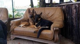 Toen we uiteindelijk Akka wilde inzetten, begon ze zoals gewoonlijk weer te blaffen. Ze is hoog in de werkdrift, zodra ze haar tuig om heeft wil ze speuren. Gelukkig heeft het deze keer een voordeel opgeleverd, want door het harde geluid kwam opeens Buddy aangerend vanuit het weiland. Niet eerst op de baas af, nee maar op onze Akka die nog steeds geluid produceerde, we waren met haar geblaf nog nooit zo blij geweest. Wat waren de eigenaren blij. Met zijn allen nog koffie gedronken en Buddy en Yara lagen al gauw heerlijk op de bank.