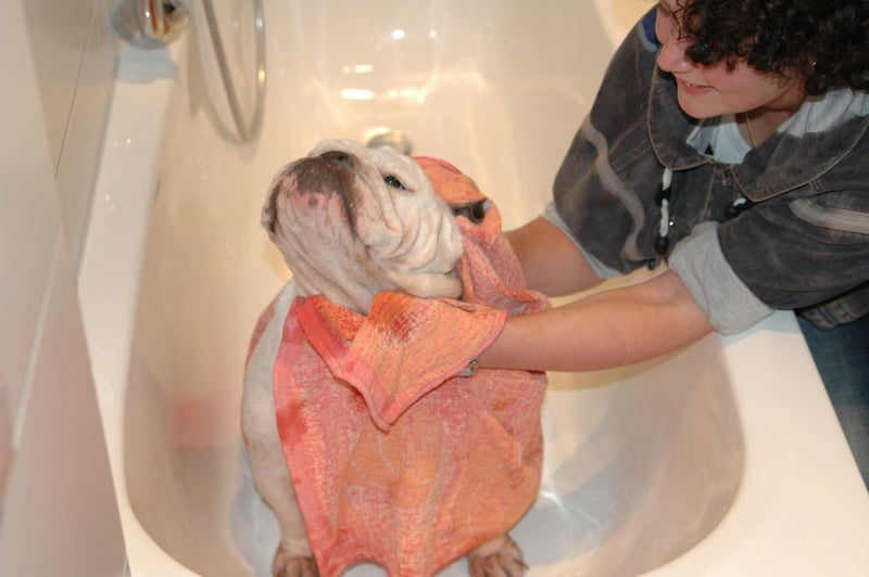 Engelse bulldog Tessa onder een hek doorgekropen en weg was ze. Deze bulldog is van een vriendin van ons en een van de eerste waarin wij Akka hebben ingezet.